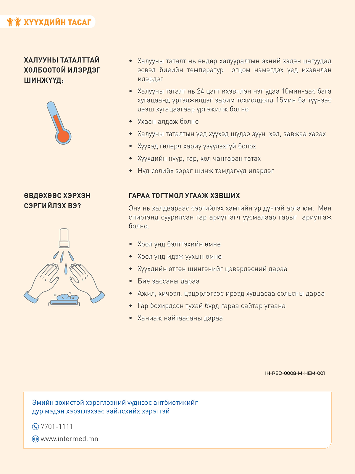 IH-PED-0008-M-HEM-001 Таталттай хүүхэд эмнэлгээс гарах үед эцэг эх, ар гэрт өгөх зөвлөмж