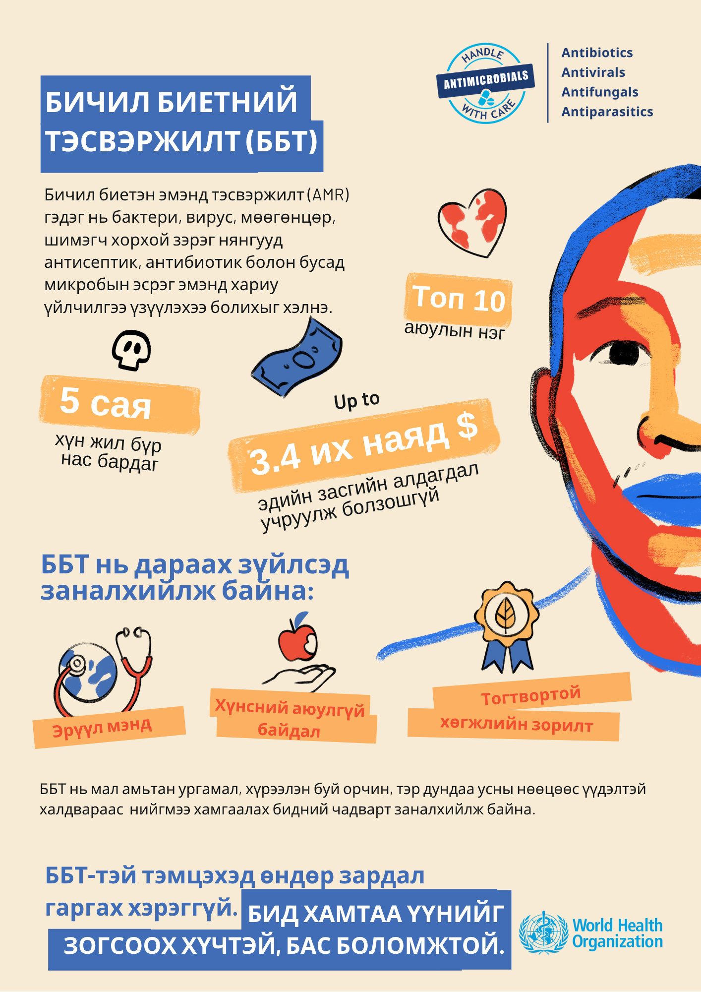 Ингэснээр ирээдүйд гарч болзошгүй эрсдэлүүдийг урьдчилан ойлгуулах, антибиотик болон бусад бичил биетний эсрэг эмийг зохистой, хариуцлагатай хэрэглэхийн чухлыг сануулах, цаашлаад дэлхий нийтийн хэмжээнд тулгамдаж буй энэ асуудлын эсрэг бид ямар үйлдэл, өөрчлөлтөөр хувь нэмрээ оруулах боломжтойг уриалж байна.