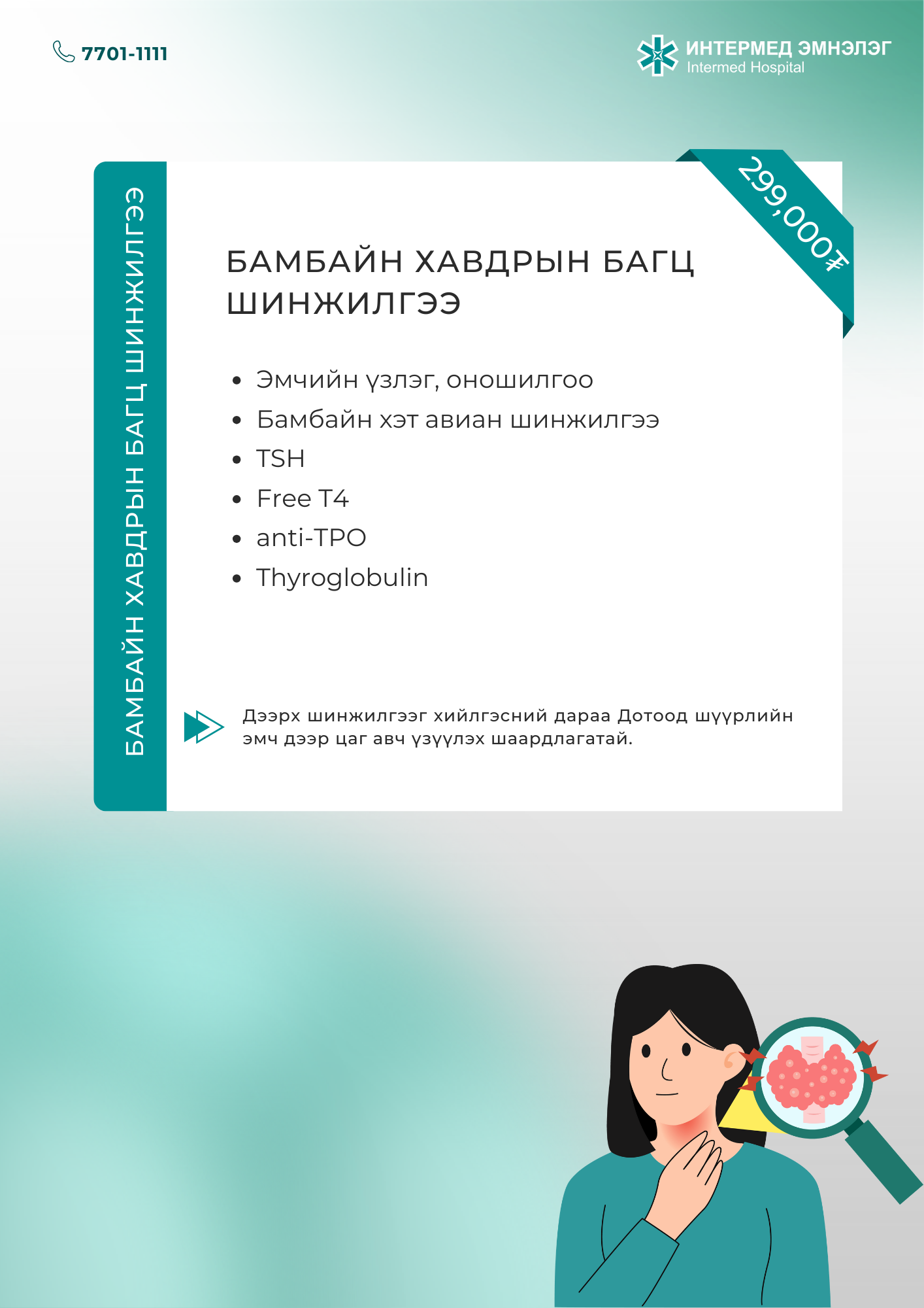 Бамбайн хавдрын багц шинжилгээ Шинжилгээний бэлтгэлтэй танилцах бол энд дарна уу.