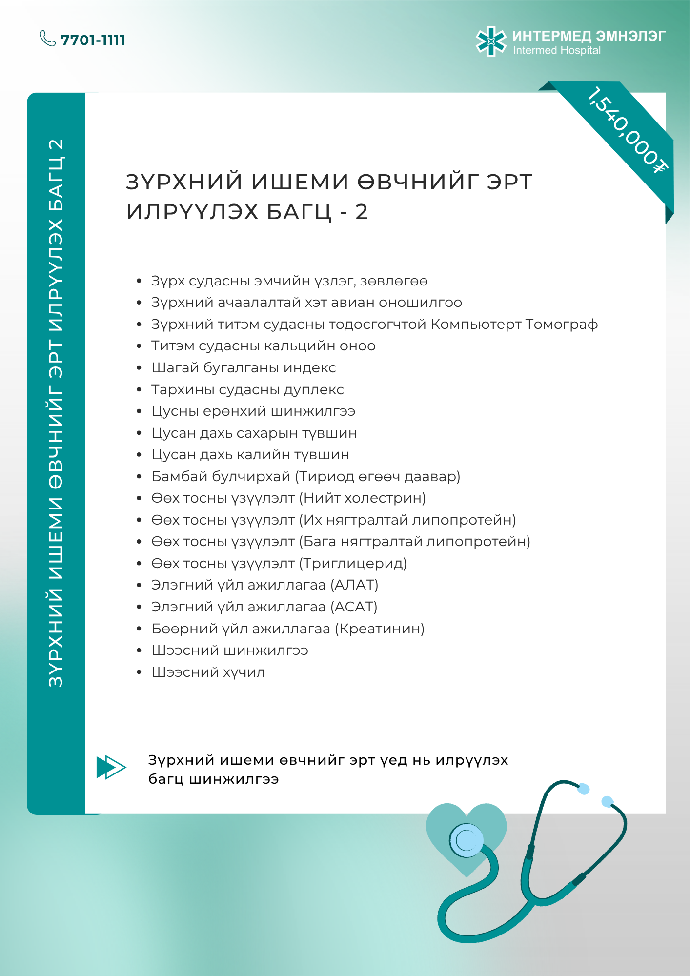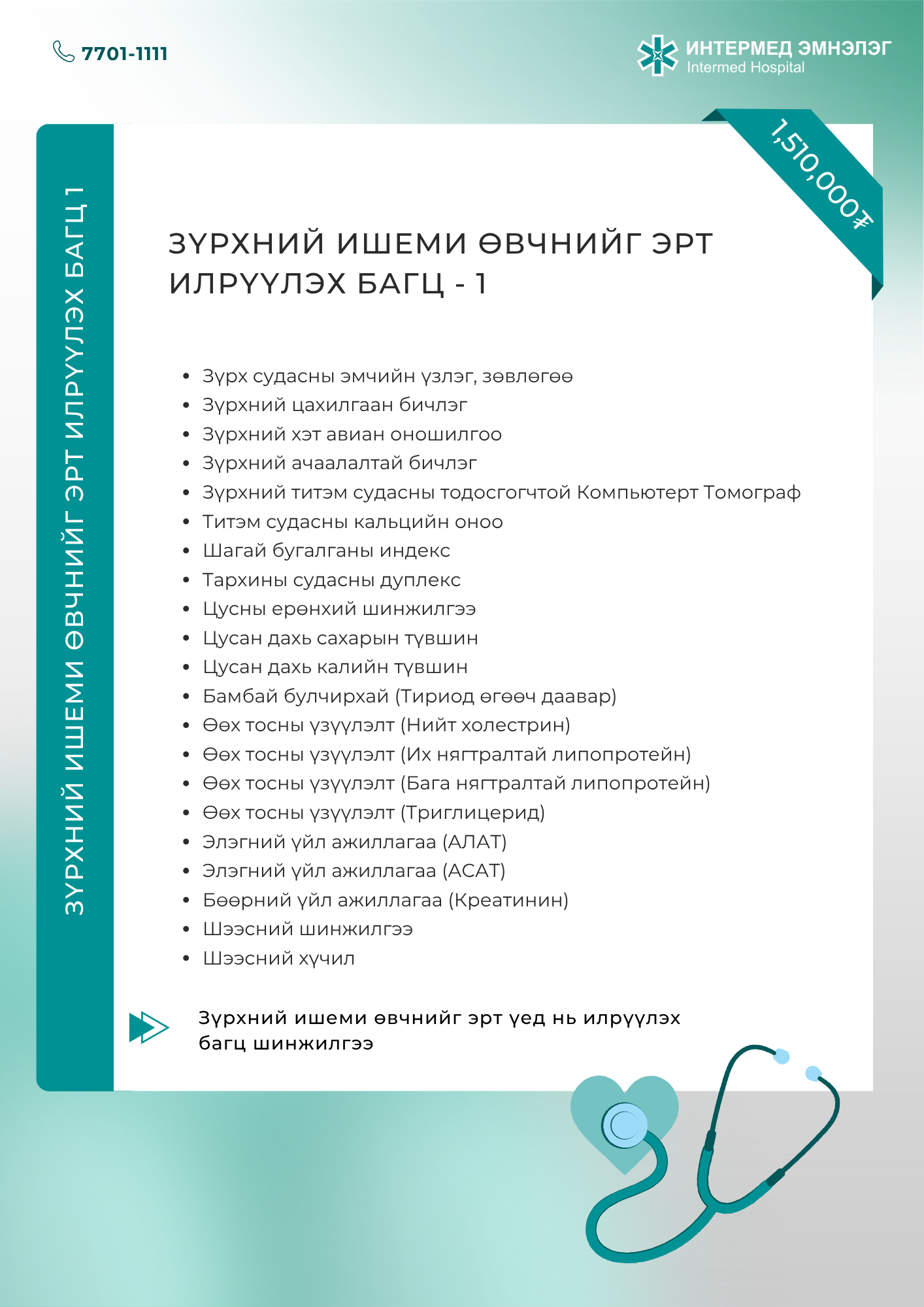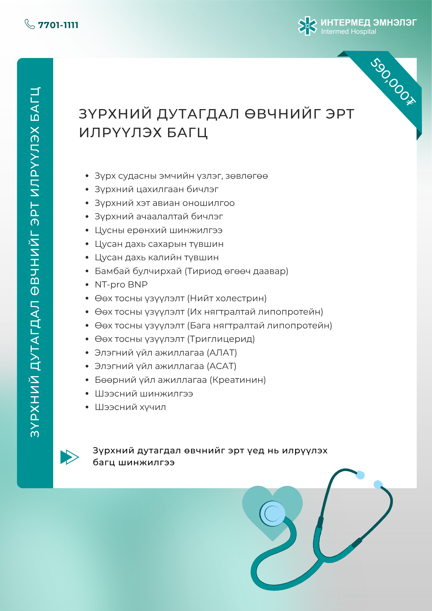 Зүрх судасны чиглэсэн багц шинжилгээ Шинжилгээний бэлтгэлтэй танилцах бол энд дарна уу.
