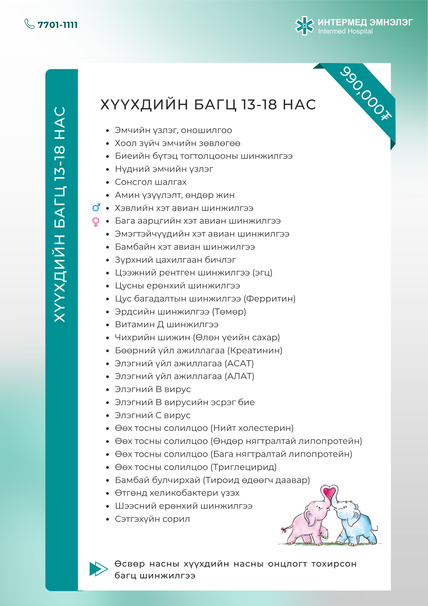 Сургуулийн болон өсвөр насны хүүхдэд зориулсан багц шинжилгээ